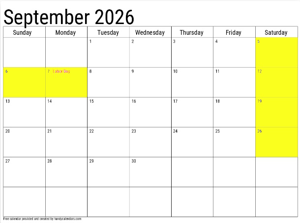 - Labor Day weekend: Saturday, Sunday, Monday - September 5-7